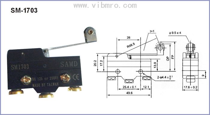 台湾SAMD山电,SM1701,SM-1701微动开关,详细图片,安装尺寸,参数,价格