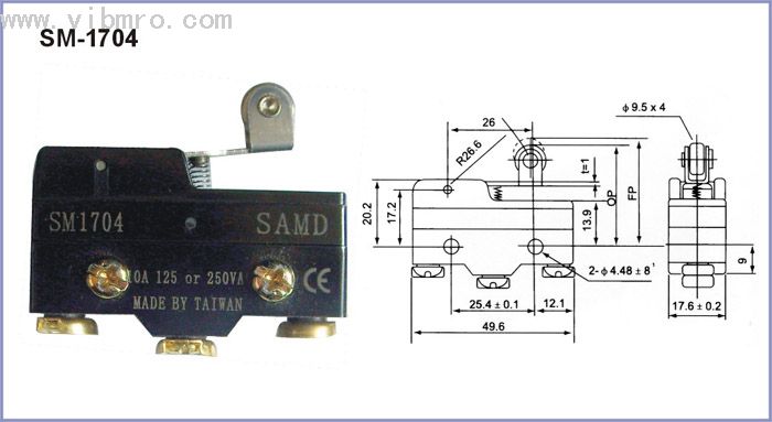 台湾SAMD山电,SM1701,SM-1701微动开关,详细图片,安装尺寸,参数,价格