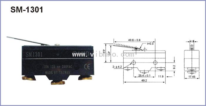 台湾SAMD山电,SM1301,SM-1301微动开关,详细图片安装尺寸参数