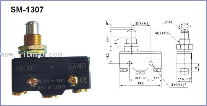 台湾SAMD山电,SM1307,SM-1307微动开关,详细图片,安装尺寸,参数,价格